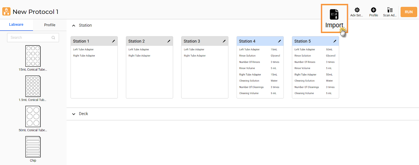 Access the Import option from the Protocol Editor page, and use the provided templates to streamline file creation and uploading.