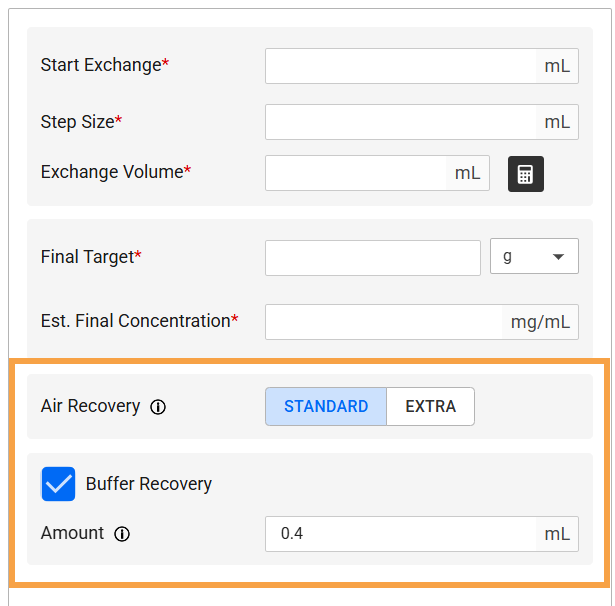 The aµtoPULSE recovery system now includes a Buffer Recovery option that flushes additional buffer across the membrane to improve recovery yield. The Air Recovery option has also been expanded with both STANDARD and EXTRA modes. The STANDARD air recovery runs a fixed time sequence to push your sample from the chip to your sample tube without foaming. EXTRA recovery continues flushing air until the sample is fully returned, with some air breaching the sample tube.