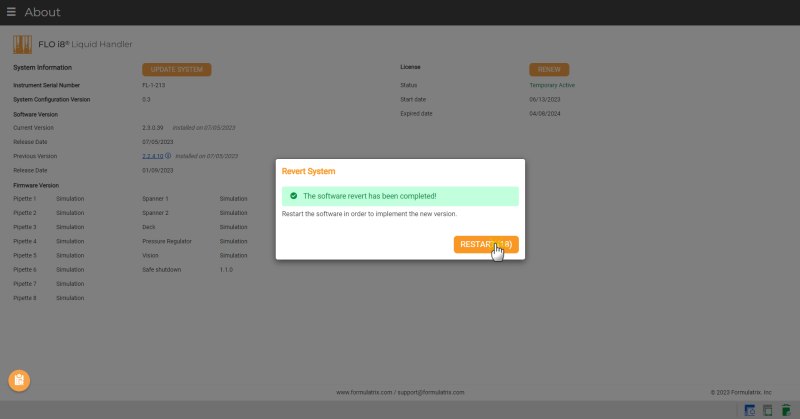 Click RESTART to Complete the Software Revert