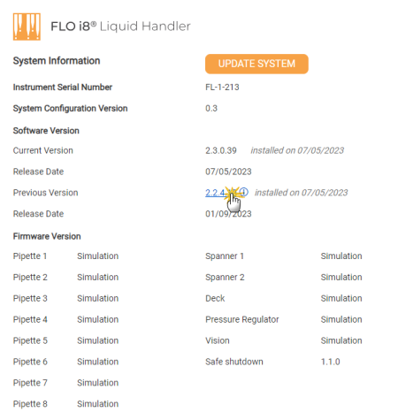 You can access new features and improvements by upgrading the FLO i8 software to the latest version. If, for some reason, updating the software introduces an issue, you can revert back to the previously installed version.