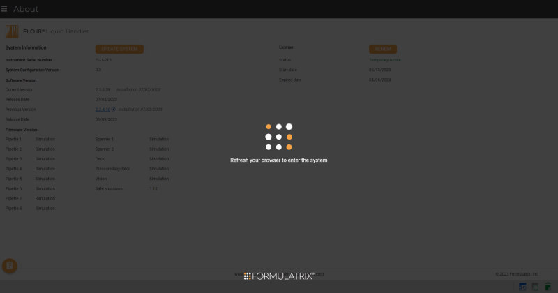 In the About page, click the UPDATE SYSTEM button.