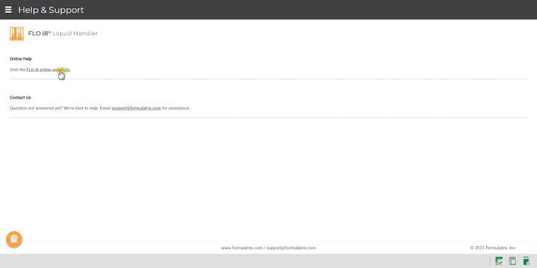 , available on every FLO i8 software page. Access and download log packages from the Log Packages page found within the Help menu. For more information, see Reporting Errors Using Log Packages.