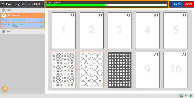 The Time Remaining bar on the Executing page counts down the remaining time as the protocol is running.