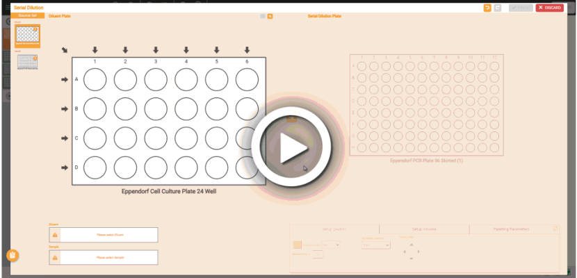 The Serial Dilution mode enables you to dilute samples using the diluent of your choice. Follow the instructions below to create a pipetting step using the Serial Dilution mode.