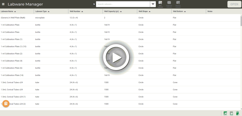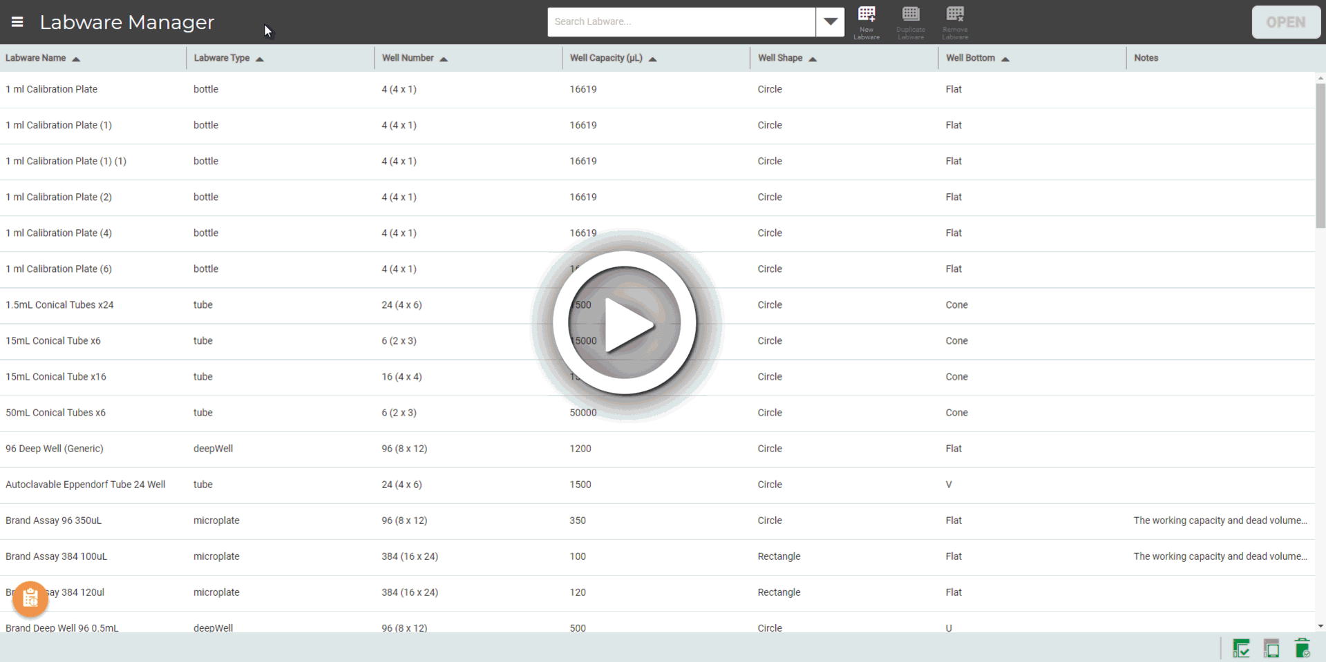 The Duplicate Labware menu is used to duplicate non-generic labware along with its details and specifications. The steps are available below.