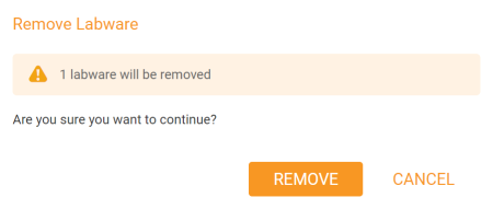 icon on the menu bar.You will see the Remove Labware dialog box to ensure the action you choose.