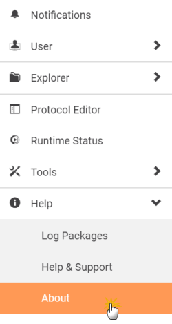 About Page on the Application Menu
