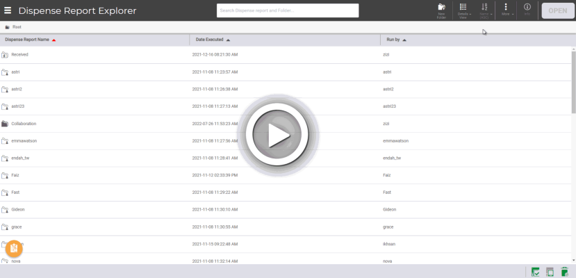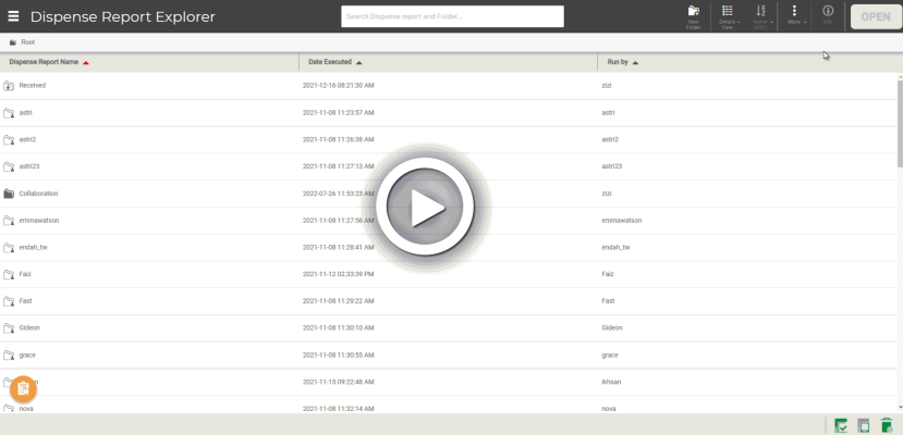 You can organize your dispense reports with folders.