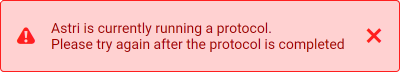 Important: You cannot execute protocols from multiple users at the same time. The following message will appear to inform you if the FLO i8 system is busy or being used by another user for running protocols.