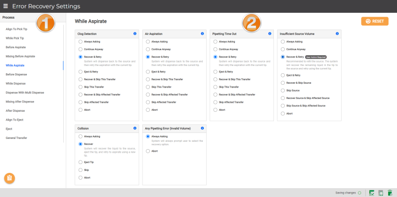 The Error Recovery Settings is a tool to define the auto-recovery actions when any instrument issues occur during FLO i8 operation.