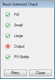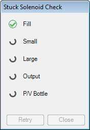 At this point, MANTIS will perform the Stuck Solenoid Check. After the test is finished, the results will be displayed in the Stuck Solenoid Check window.
