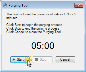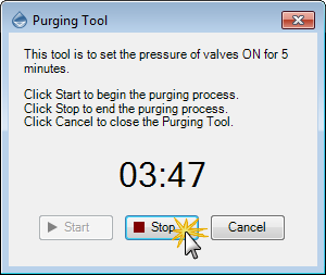 The default time for the purging process is five minutes. If the liquid is completely gone from the Air Ribbon in less than five minutes, click Stop to end the process.