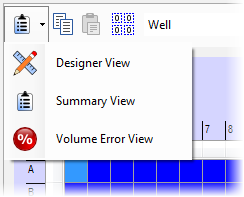 Check that you are not in Summary View or Volume Error View. These two views will "freeze" the rest of the interface. Switch back to Designer View in order to enable the rest of the software's functionality. To change views, click the button at the top of the plate designer to display the alternative views.