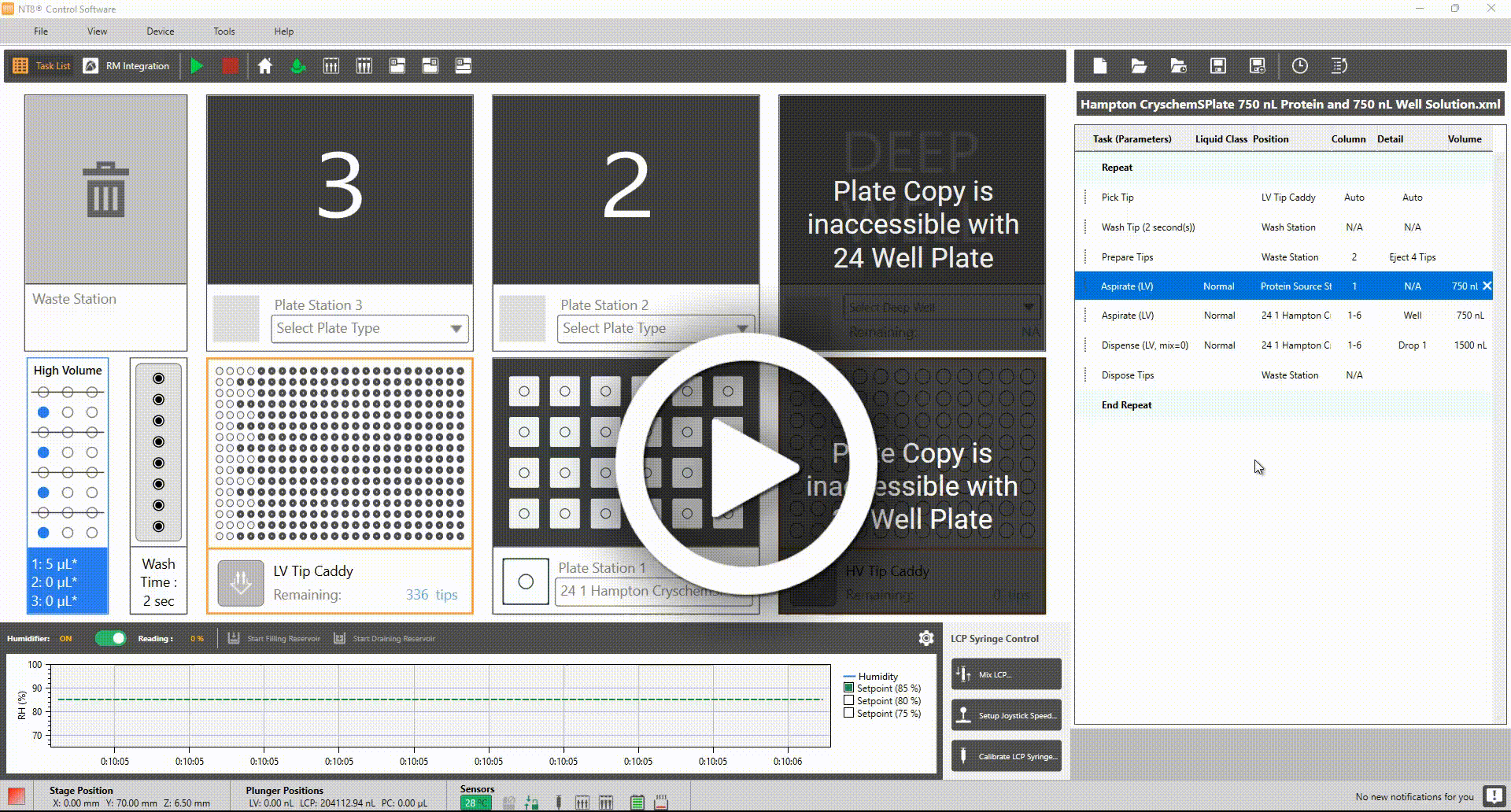 Place the LV tip caddy and the 24-well Sitting Drop Experiment plate on the NT8.