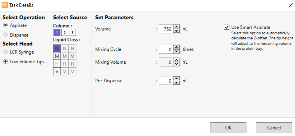 Task Details Window for Protein Aspiration