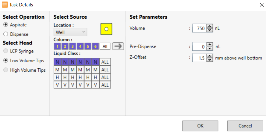 Task Details Window for Well Solution Aspiration