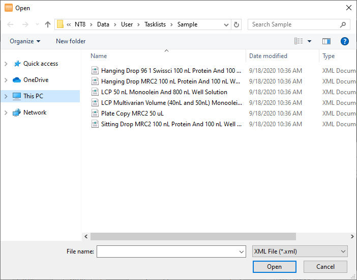 Use the Sitting Drop MRC2 100 nL Protein And 100 nL Well Solution.xml template to run a sitting drop experiment. Find out more about Sitting Drop Experiments.