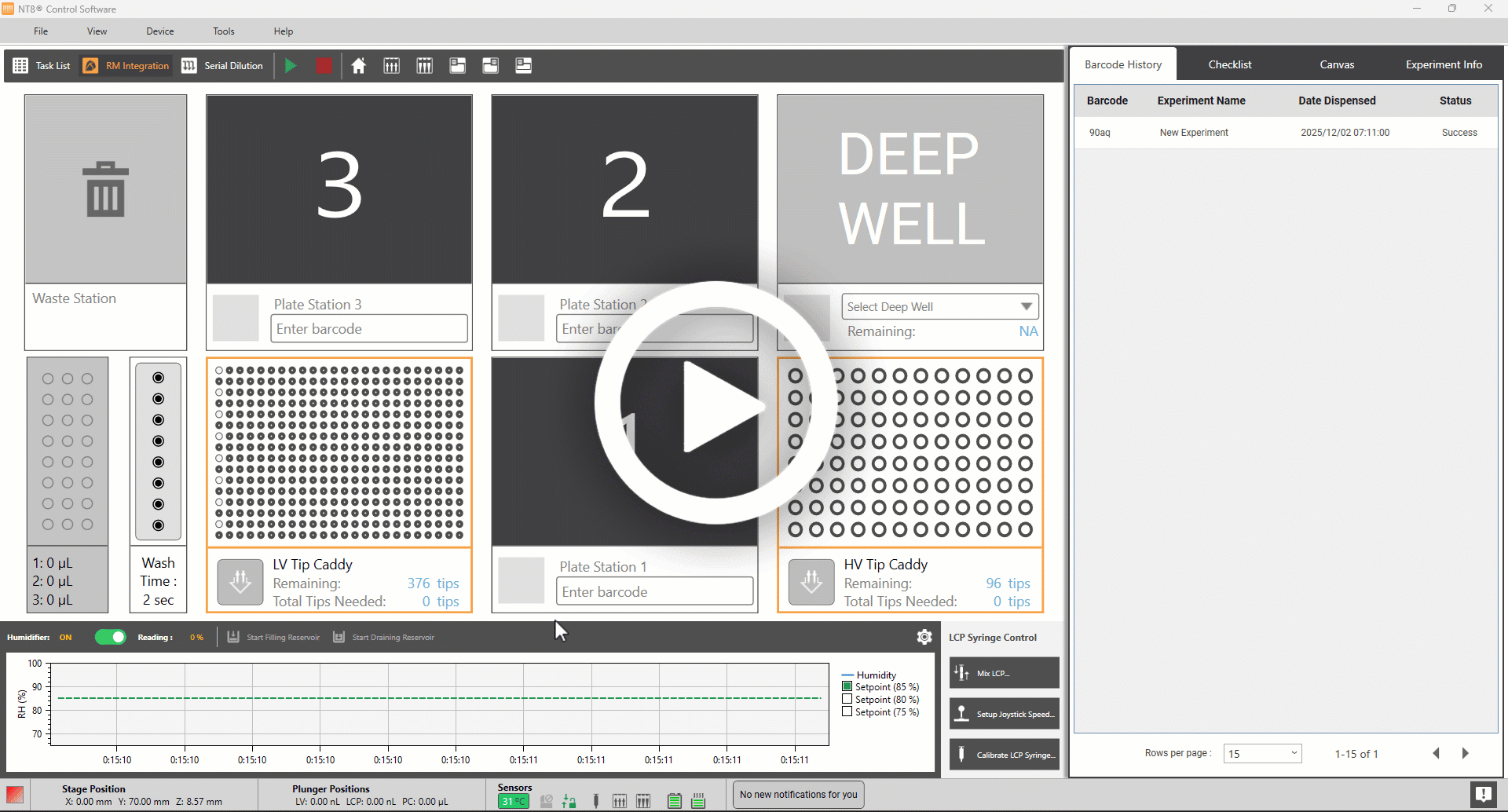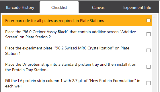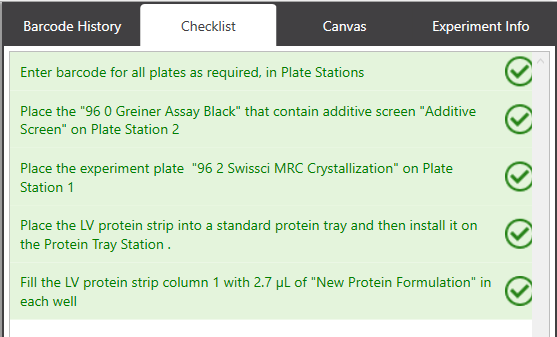 Next, follow the on-screen instructions presented on the Checklist tab in the side panel. The instructions will guide you to physically prepare your labware to successfully execute the protocol. For more information, please read the ROCK MAKER Integration view.