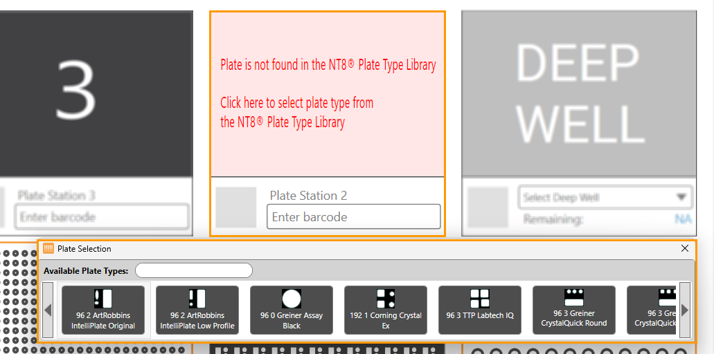 Click the plate station where the additive screen is placed (highlighted in red). The example below uses Plate Station 2. Then, select a plate type.