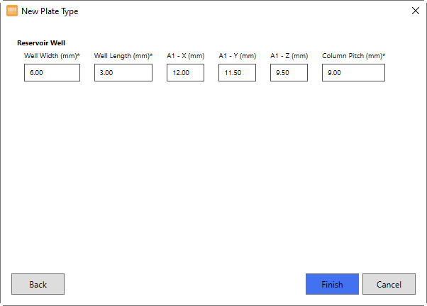 Insert your plate datasheet in the provided fields of the Reservoir Well information. For reference, see the picture below: