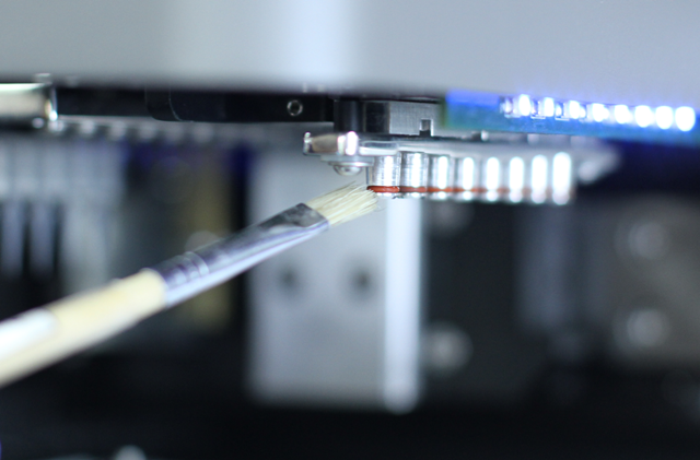 Using the paintbrush, lightly but evenly apply grease to the front and back of each of the eight O-rings on the NT8’s plate copy head.
