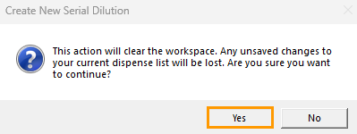 Changing the plate after completing any sections in the Serial Dilution side panel will clear all information.