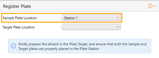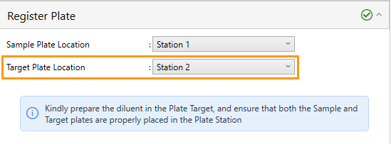 You can use the same Plate Station for both the sample and target location if you are planning to dilute the sample in the same plate.