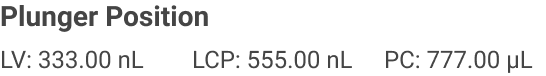 The Plunger Positions display the current plunger positions for the low volume (LV), plate copy (PC) and lipidic cubic phase (LCP). |