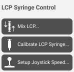 Setup Joystick Speed button — Adjusts the LCP syringe movement speed when using the manual lever.