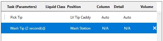 If you have already added the wash command to the Task List, you can set the wash time by double-clicking the Wash Tip command in the Task List panel.
