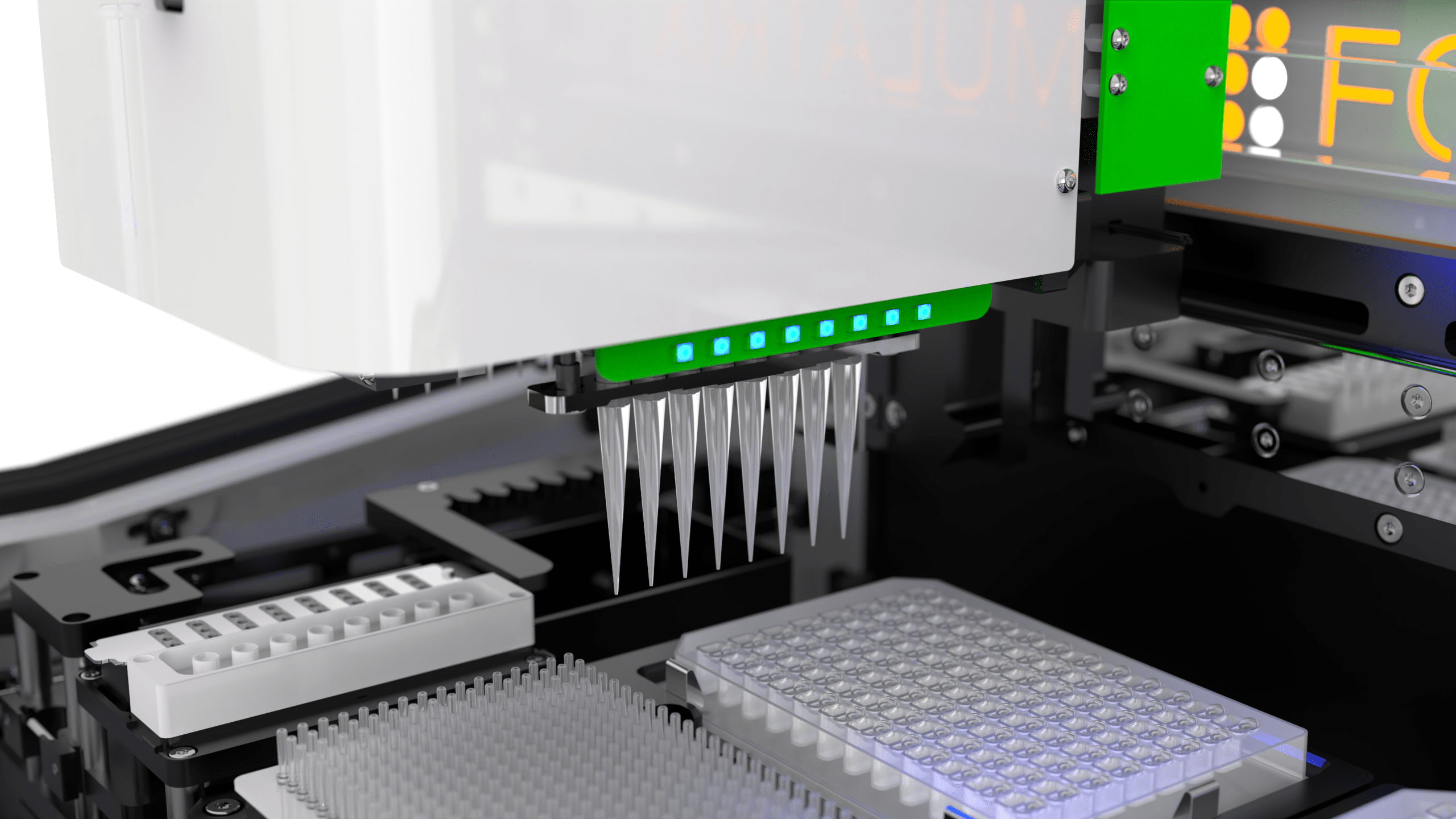 The deep-well station is compatible with 96 deep-well plates, which are used to copies of your experiments.