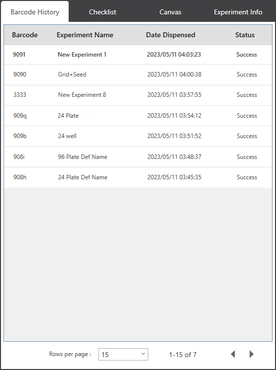 New Barcode History Table for Dispensed Experiment