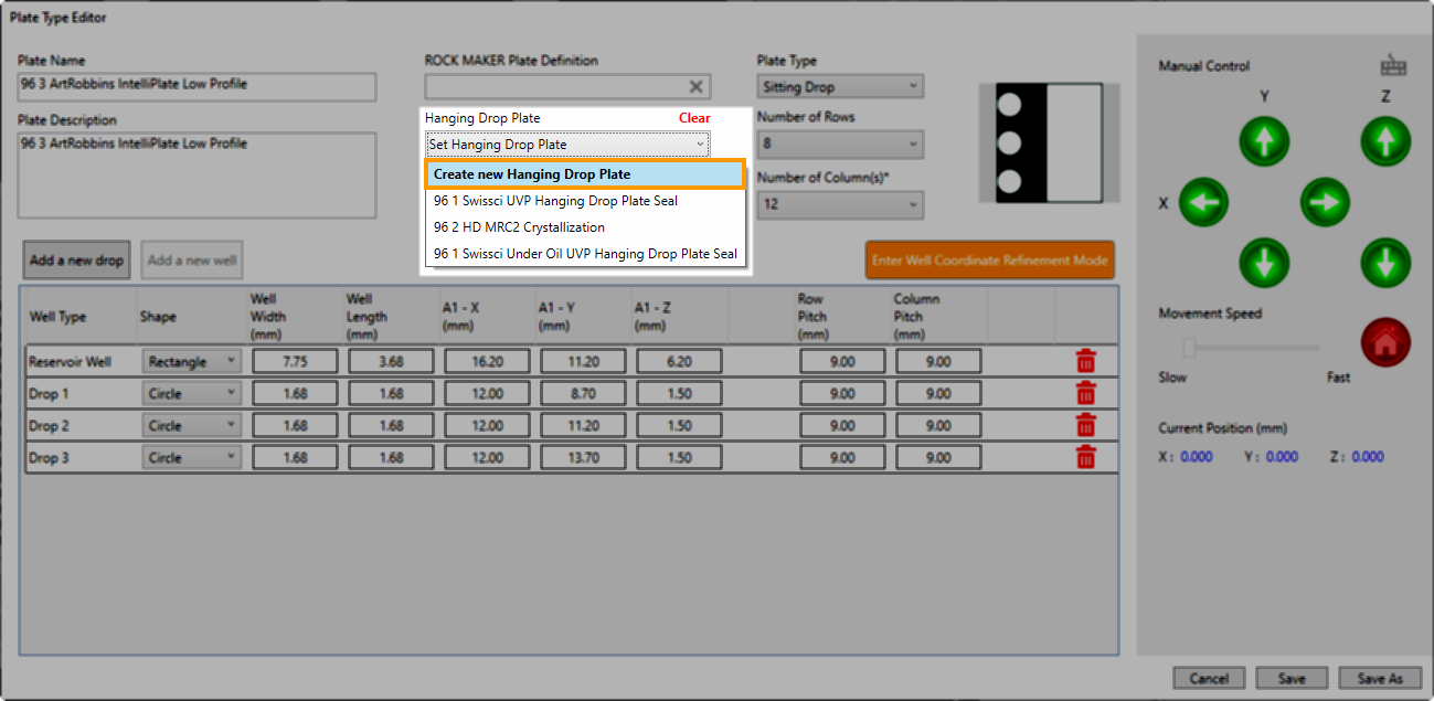 Another innovative new feature is the ability to create a new Hanging Drop Plate directly from the Plate Type Editor. This enhancement makes creating new plates for your experiments easier than ever.