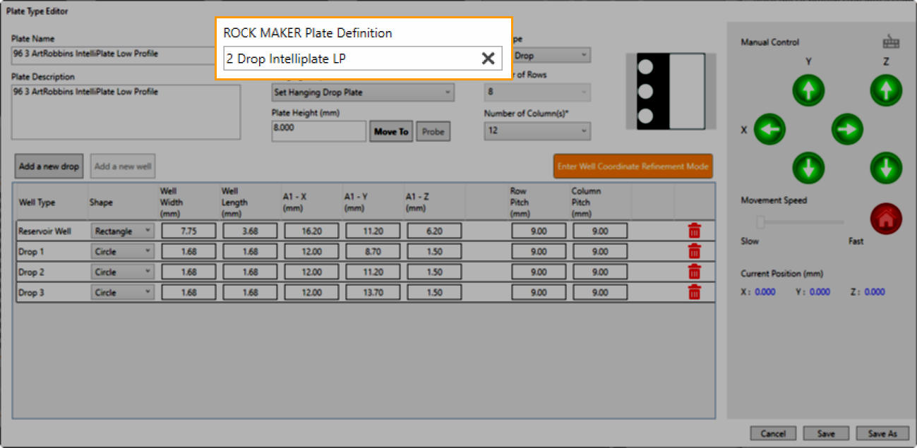 Easily Create New Hanging Drop Plate from Plate Type Editor