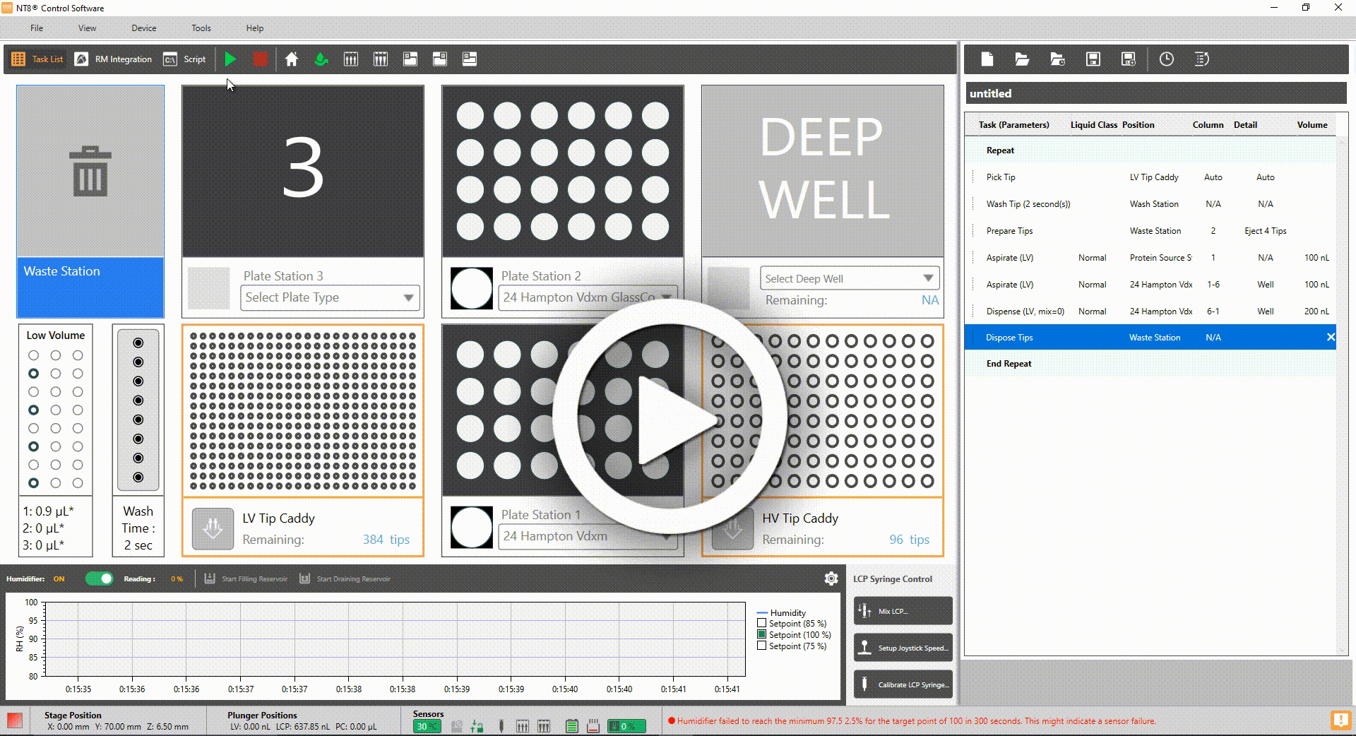 The reason for this extra precaution lies in the design of the Waste Station, which must be modified to accommodate the 24-Well Plate feature. NT8 V3 hardware users can ensure smooth and seamless experimentation without compromising accuracy or safety by ejecting LV tips before LCP Syringe calibration.