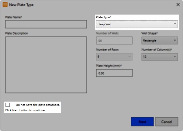 A Checkbox to Allow Adding New Deep Well Plates without Datasheet