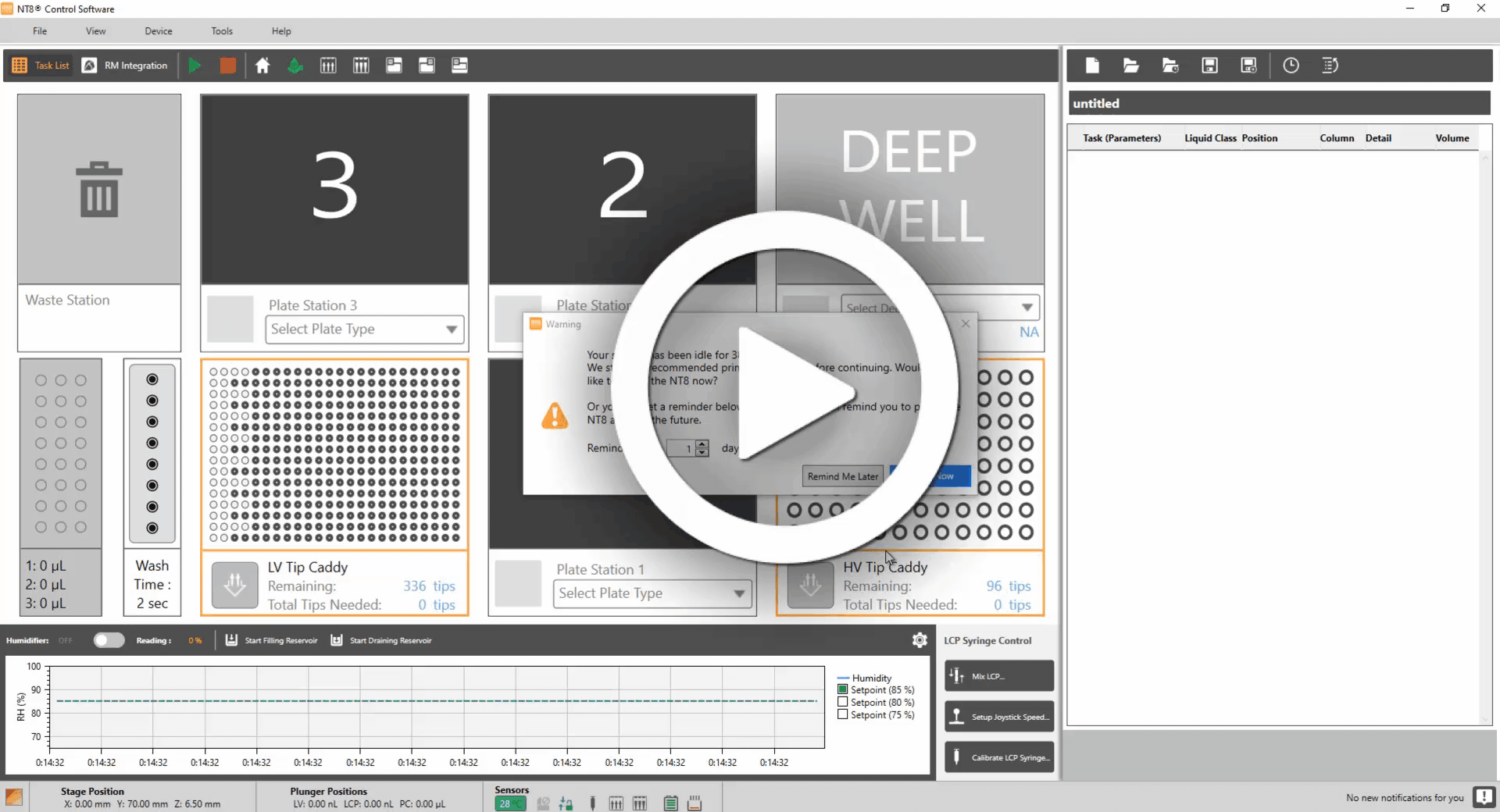Maintaining the NT8’s performance and drop precision is essential. Therefore, you will receive a reminder to prime the NT8 when the system has been idle for a few days. You can prime the NT8 immediately or postpone it by selecting the Remind Me Later button. Previously, the prime reminder was only visible during the startup process.