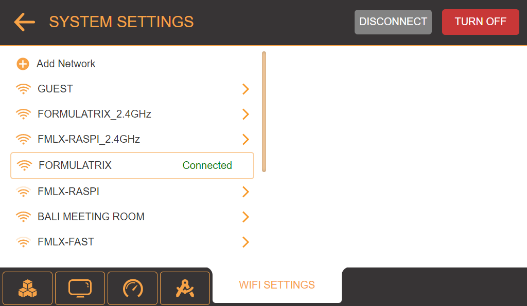 When the system is connected to the WiFi network, a green Connected indicator will be displayed next to the selected WiFi network.