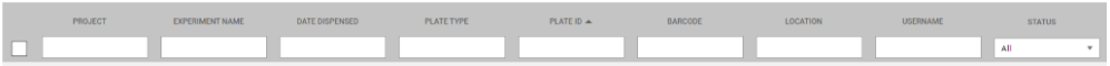 Enter any information about the plate into the appropriate field under the correct column. For example, if you know the plate’s barcode number, type it under the barcode column (See the image below; marked in an orange square).