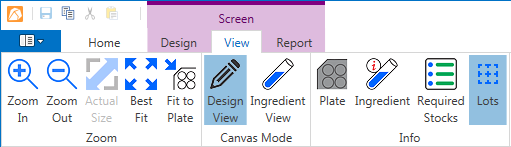 - On the Screen contextual tab set, go to theView tab and click the Lots button, and then click the Add Screen Lot button.