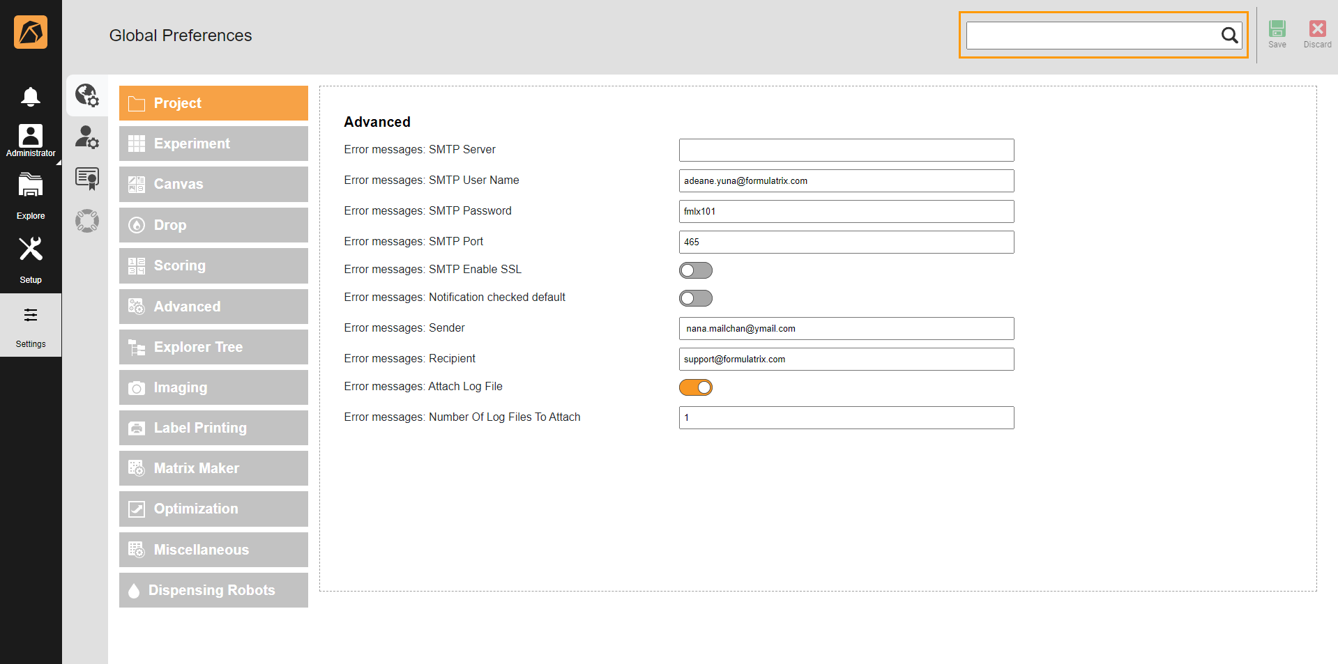 Enter support@formulatrix.com. This is the error message recipient.