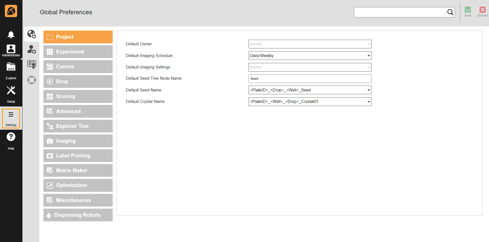 2. In the Global Preferences submenu, complete the following fields.
