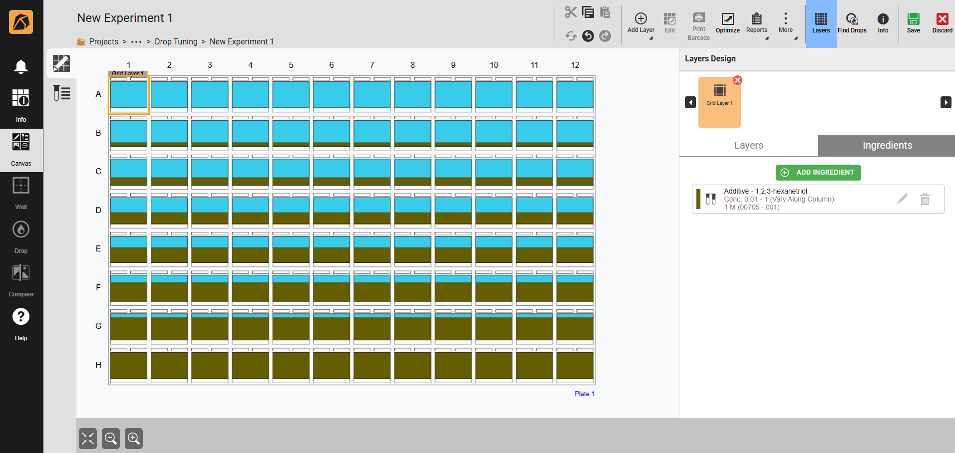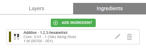 A grid layer automatically varies its ingredient’s concentration or pH. You can modify the ingredient settings in the Layers Design panel.