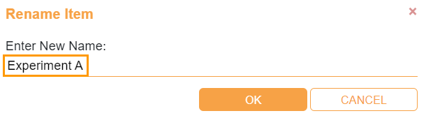 Once you click the Edit button, the Rename Item dialog box will appear. Then, delete the old name and type the new one in the Enter New Name field. For example, the new name in the example below is Experiment A.