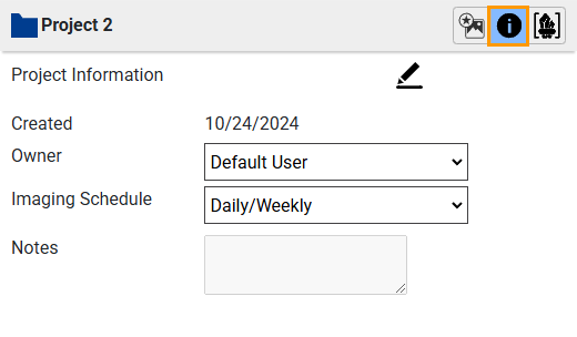 provides information about the creation date, owner, imaging schedules, and notes. While the Created field is auto generated, you can modify other fields by clicking the Edit button