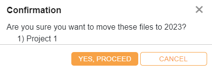 3. Drag and drop the items to another project and click YES, PROCEED in the Confirmation dialog box.