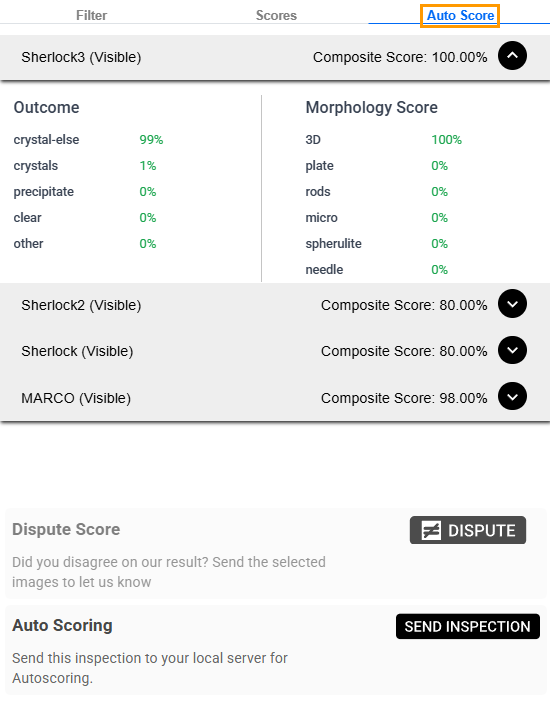 Auto Score: Lets you send your inspection for auto scoring and view the results.
