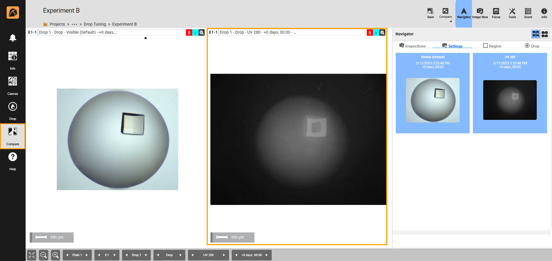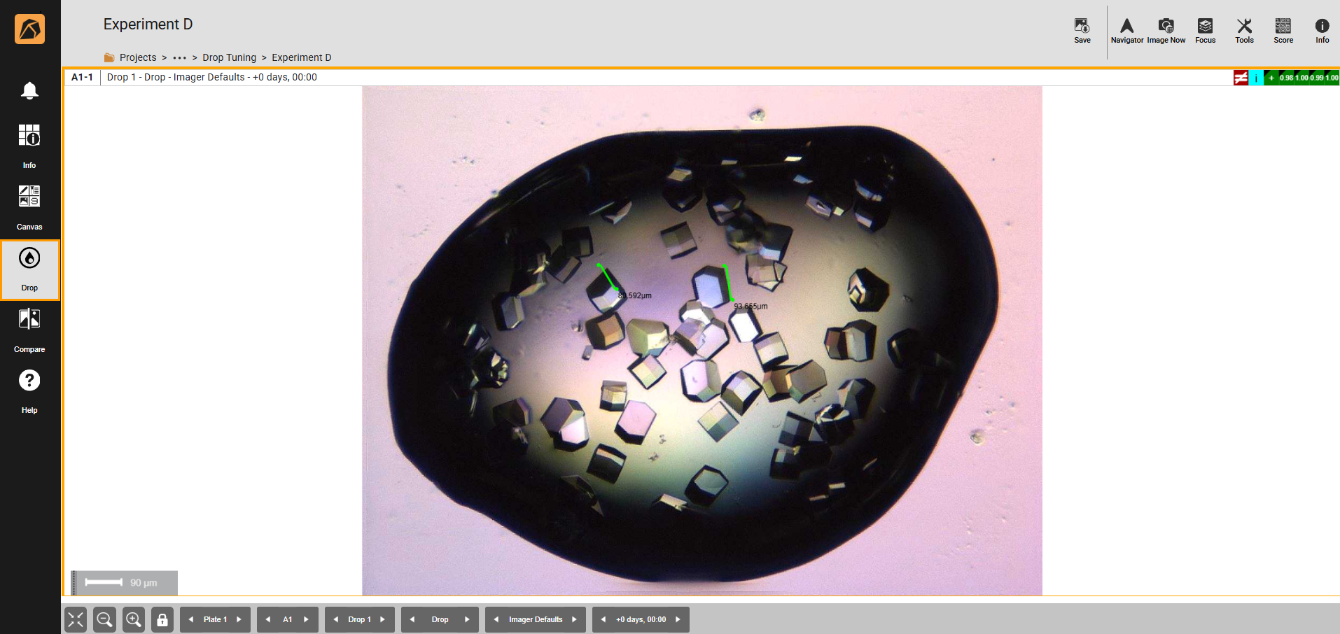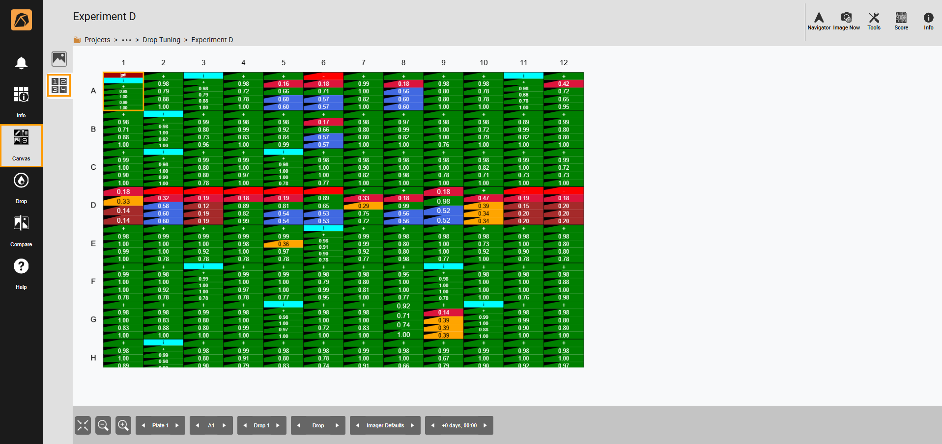 on the top right bar. It allows you to browse plates, wells, drops, regions, imaging settings, and imaging sessions.Image Now
