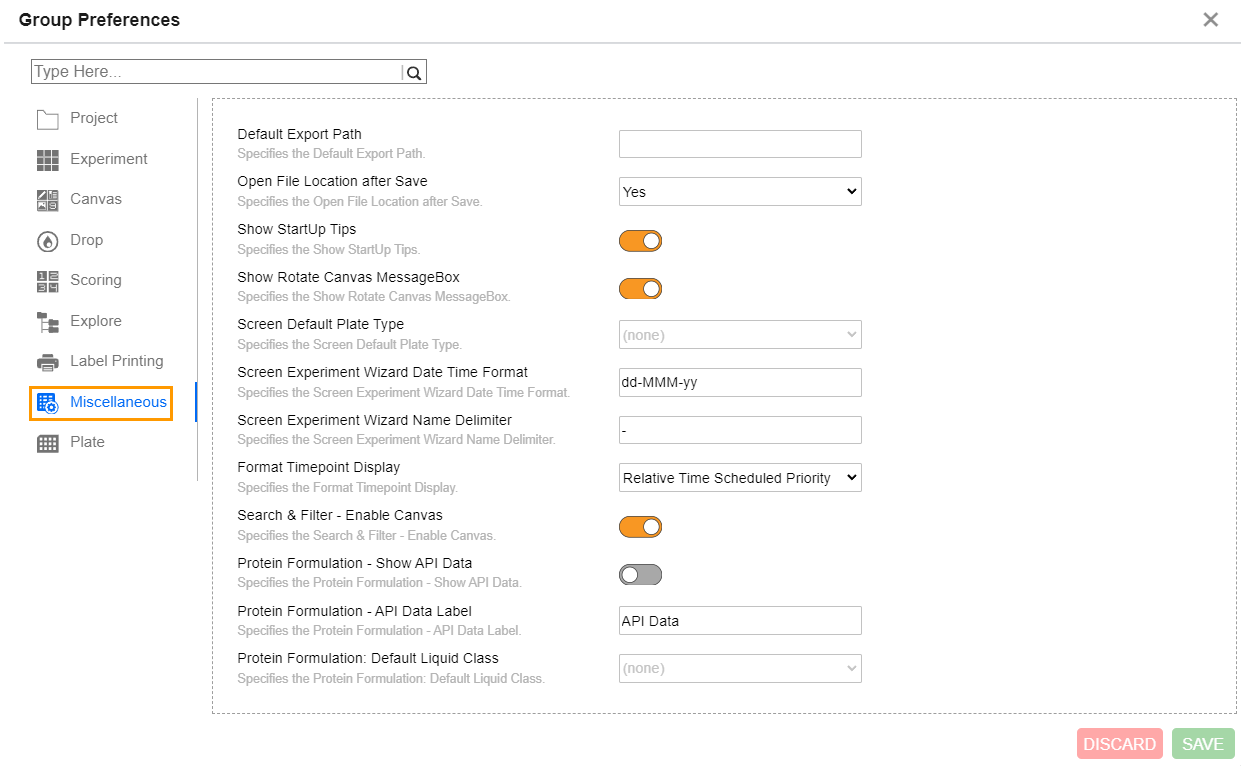 Protein Formulation: Default Liquid Class |