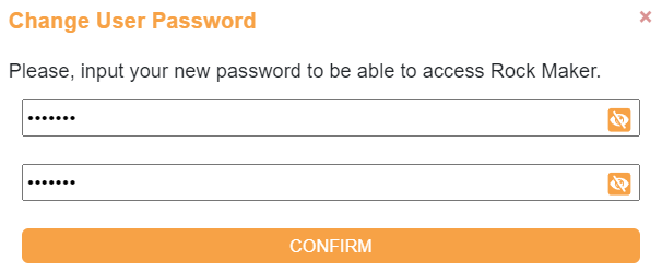 The Change User Password dialog box will appear. Enter and confirm your new password. Then, click CONFIRM.